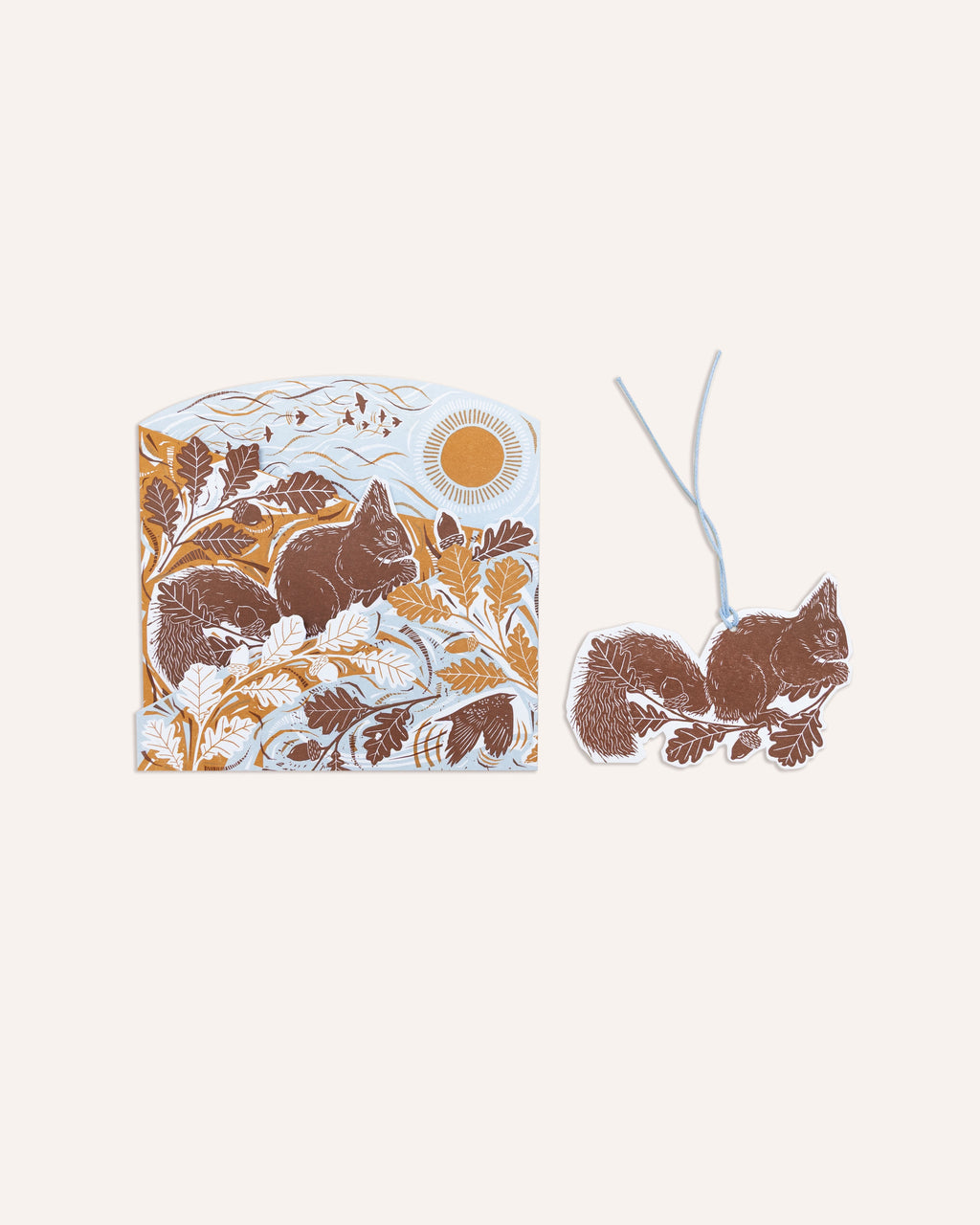 The card is die-cut and lithographically printed using hand-mixed colours. Simply pull out the card to showcase the whole scene along its concertina length and use the mini hanging decoration for the tree.