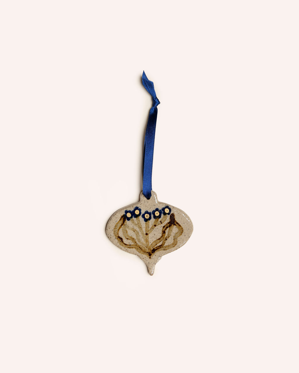 Paige sculpts these bauble-shaped pieces from stoneware ceramic by hand, before painting on their floral pattern in her Norwich-based studio. Each is finished with a length of silky blue ribbon ready for hanging.