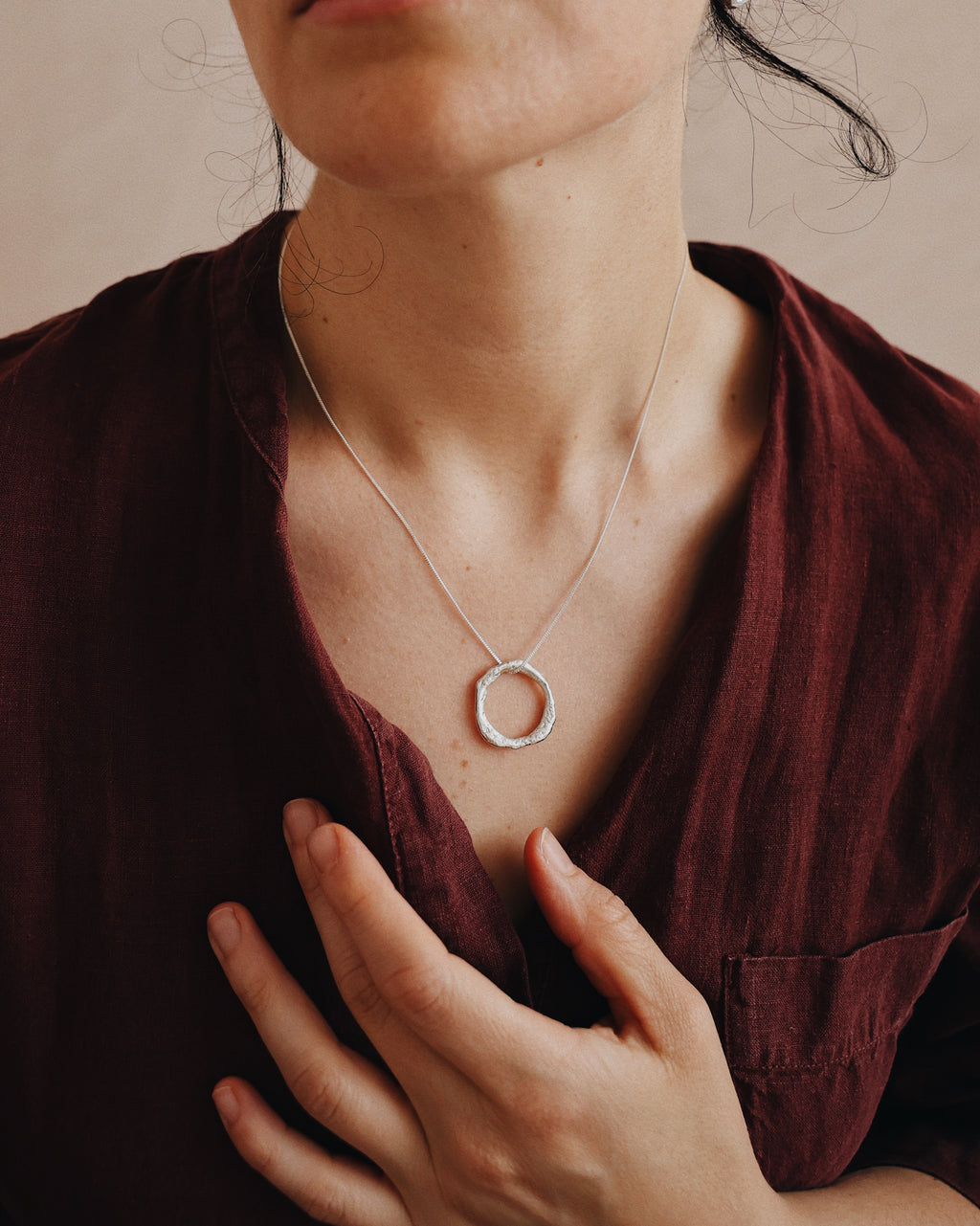 This necklace is entirely handmade from recycled sterling silver by Becky, an environmental artist turned silversmith who prioritises making timeless, sustainable jewellery.