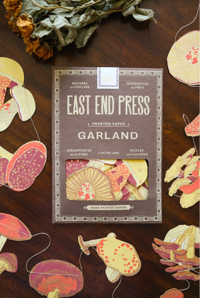 Perfect for autumn as well as any foraging and fungi enthusiasts, this paper garland has twenty mushrooms stitched across its three-metre length.