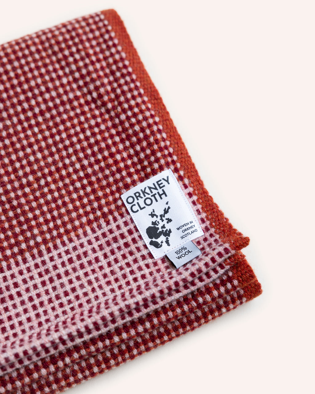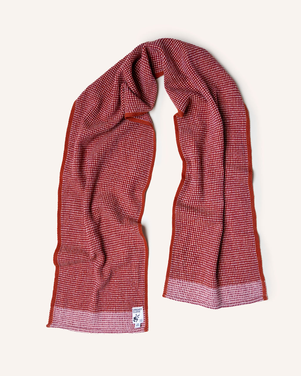 This scarf is wide, cosy and wrinkle resistant, the perfect staple for cool weather. To finish, the recognisable Orkney Cloth label is sewn onto the reverse.