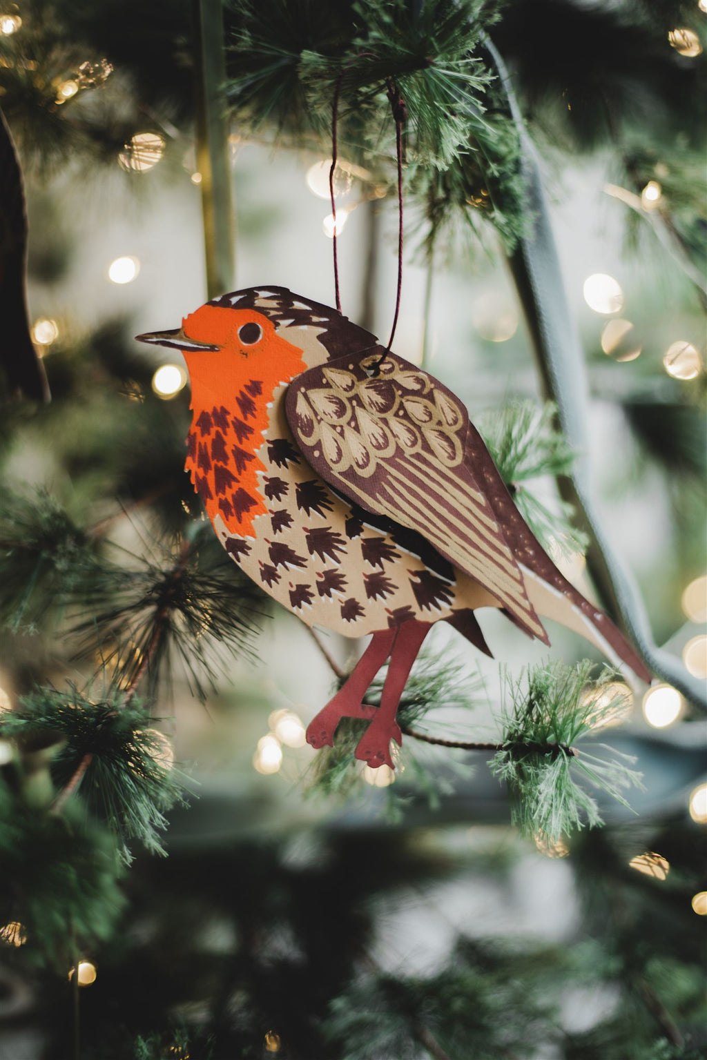 Each is screenprinted by hand onto recycled paper and features a 10cm waxed cotton thread so it's ready for hanging straight onto your tree. They're made with double layers of the highest quality paper which fold out to create a 3D form.